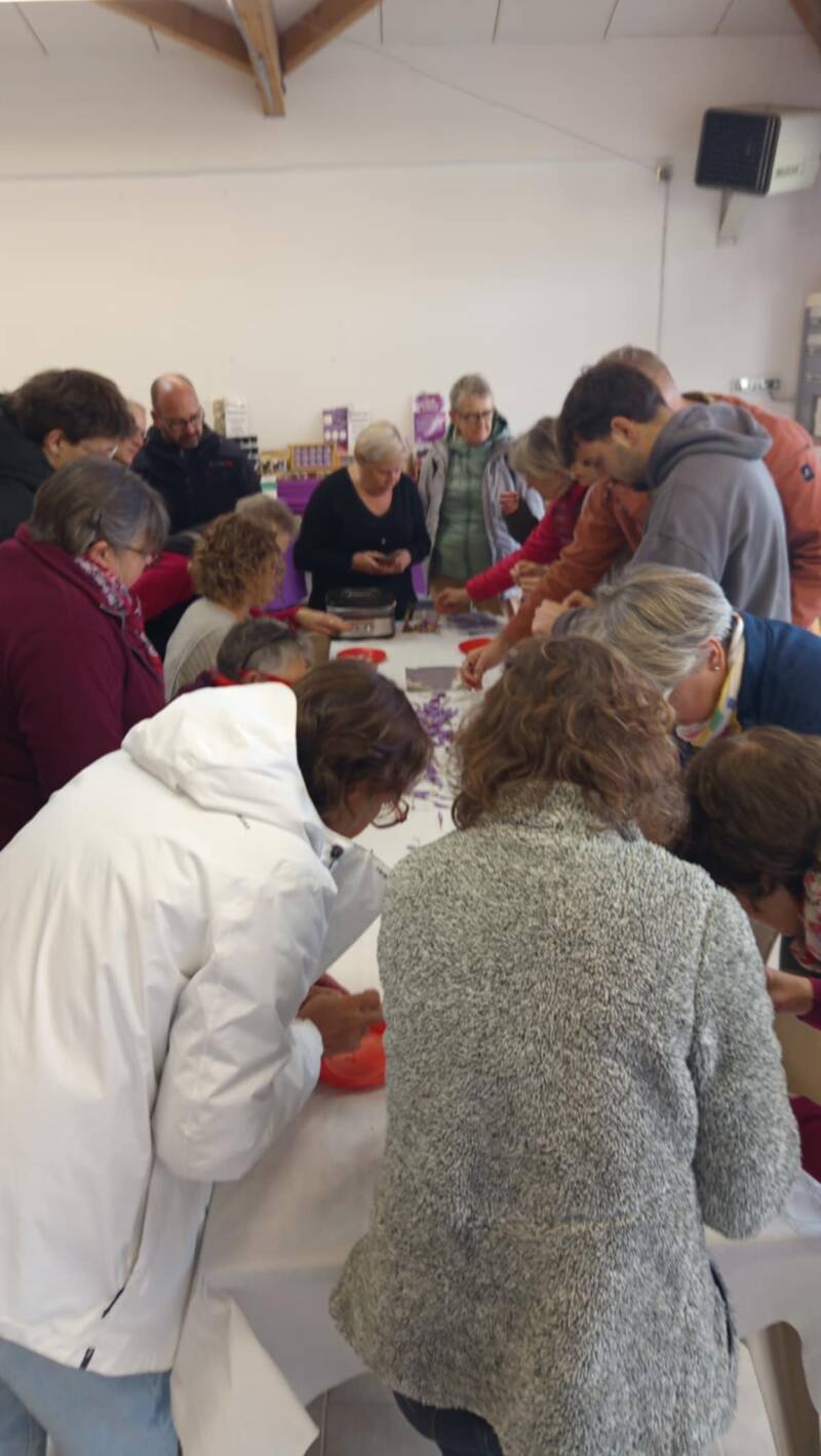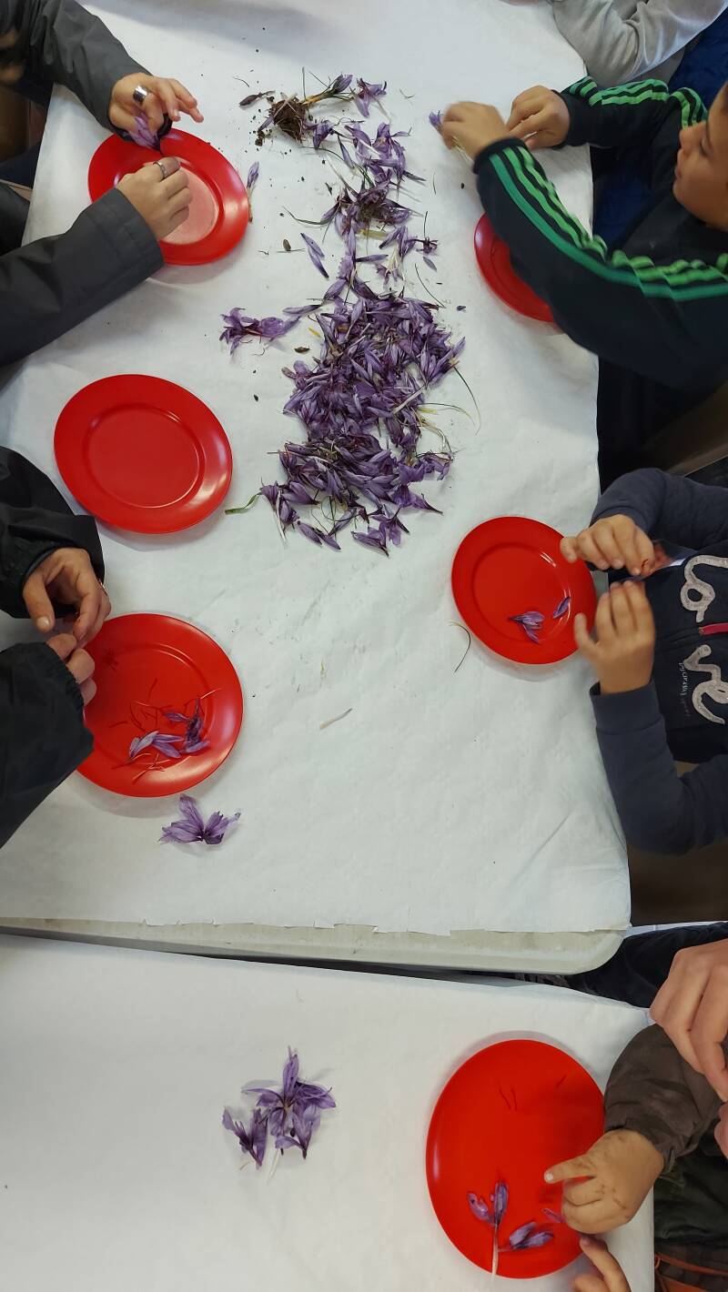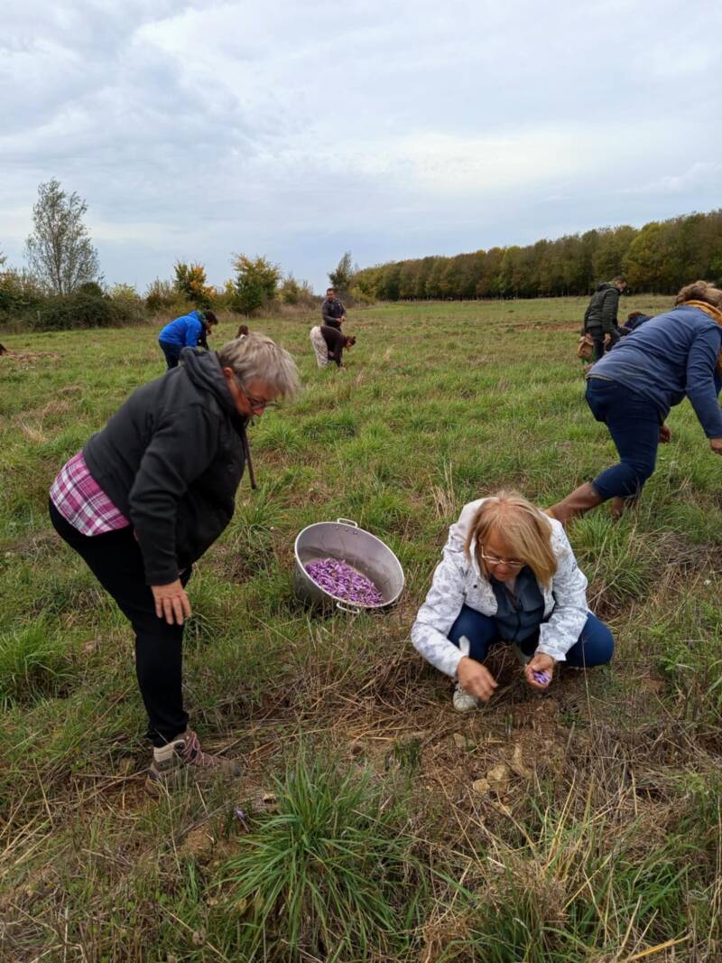 Les visiteurs ont pu observer la floraison du crocus sativus, cueillir quelques fleurs eux-mêmes, et découvrir le délicat travail d’émondage — cette étape où l’on extrait les précieux pistils rouges.
