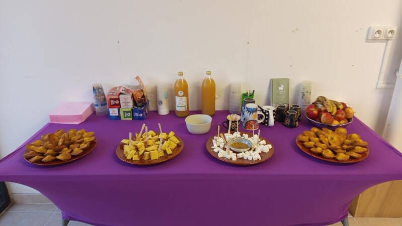 Nous avons partagé plusieurs douceurs au safran : gelée de safran avec le fromage de chèvre de Chêvrement Votre, du miel, du jus de pomme au safran, et bien sûr les fameuses madeleines au safran de Lily’s Cakes, qui ont fait l’unanimité.